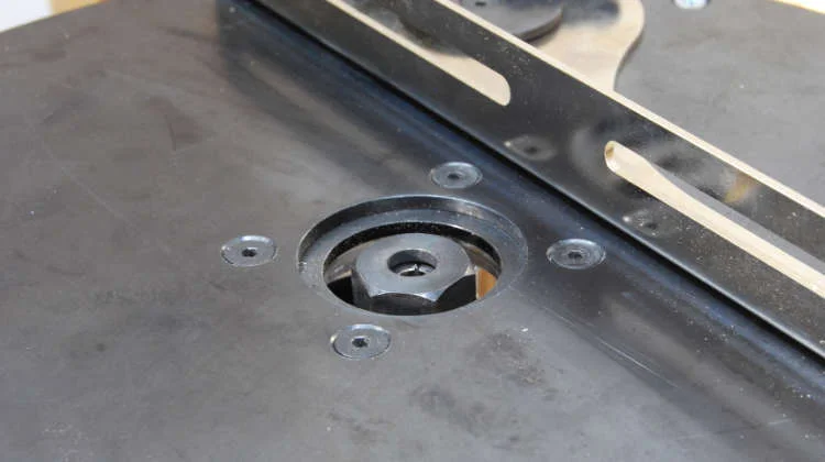 木製サブフェンスと、ビットのベアリングを面一に設定します。
