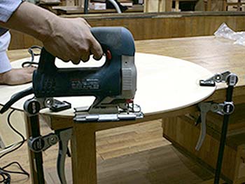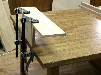 サンディング作業で材料が動かないように仮止め。