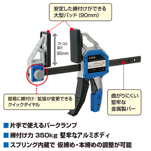 特徴① パッドを大型化することにより、力点を分散し対象物を傷めず均一に締付けが可能