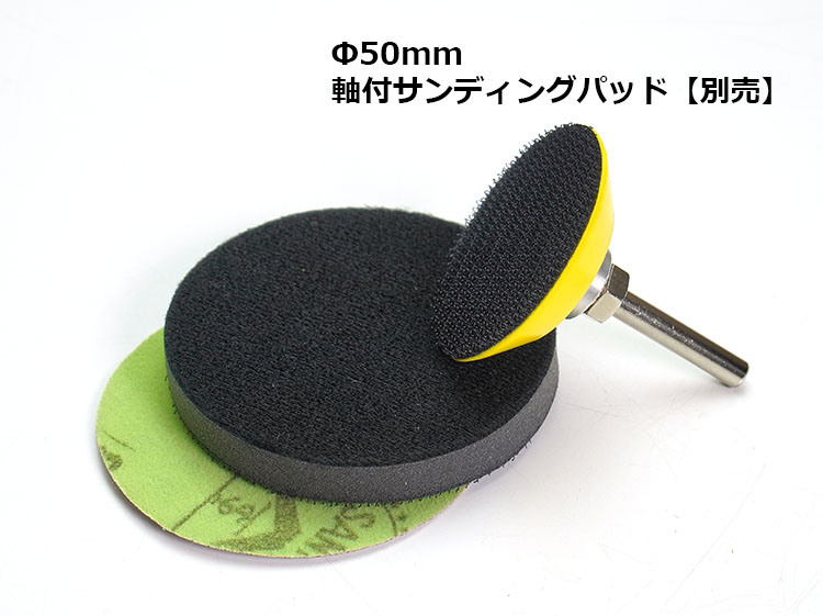 Φ50mm軸付サンディングパッド(別売)との接続例。