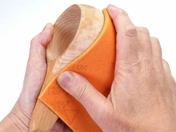 スイス生まれで150年の歴史を持つ、高品質研磨製品の世界有数のメーカー Sia(シア)社の革新的なサンディングツール。基材である厚さ5mmの柔軟でコシのある高密度ポリウレタンフォームは、圧力を分散して手指の当たっていないところも含めて広い被加工面に均一に密着することができます。同時に、弾性に優れた結合剤によって砥粒が均質に接着されており、砥粒層の形状追従性も優れています。