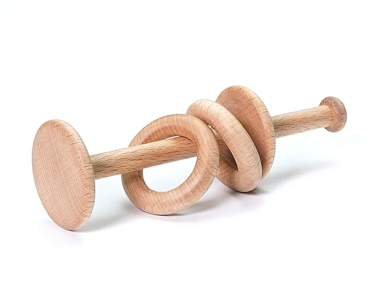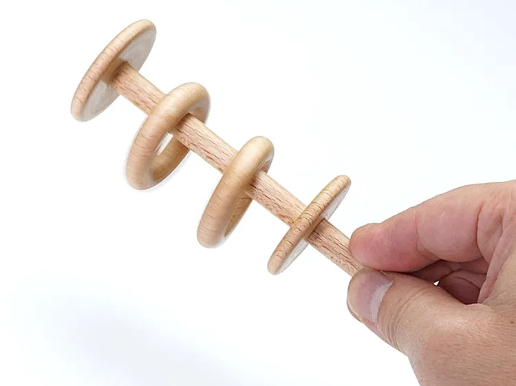 ① 硬くて靭性に優れるブナ材を用い、ひとつの塊からガラガラを削り出しました。