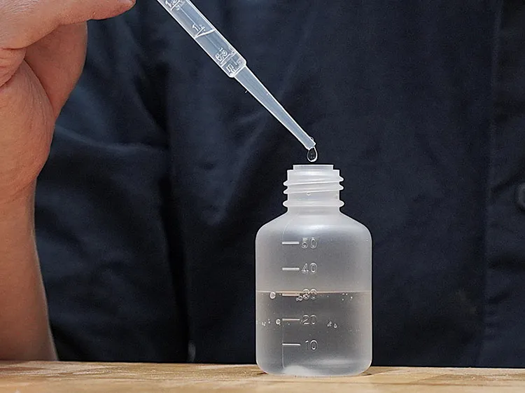 遅乾剤調合の際は、目盛付きの蓋付ボトルが便利です。