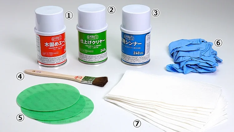 木固めエース、仕上げクリヤーに合わせて調整された、オリジナルのシンナー。