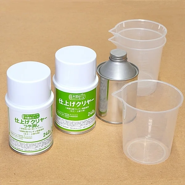 木固めエースとの相性を考えて作られたオリジナルの一液型ポリウレタン樹脂塗料「仕上げクリヤー」の全つや消しタイプ。