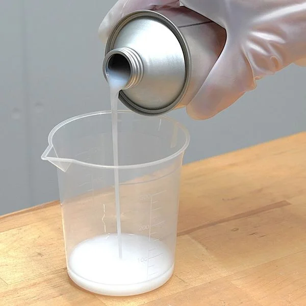 無色透明の低粘度の液状で、つやのある仕上がり。