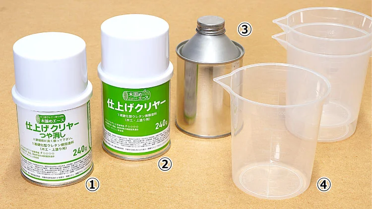 「仕上げクリヤー」(全つや)と調合することで、つや消し度合いを調整することができます。例)1:1混合で5分つや(半つや)となります。
