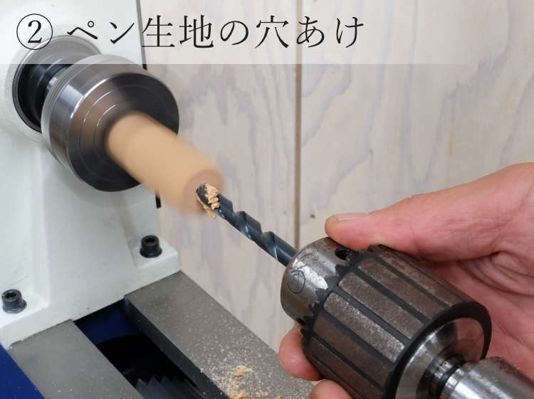 ペン生地チャック 旋盤上でペン生地の穴あけをする際、ペン生地を保持するのに使用します。 |