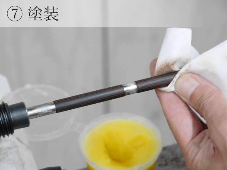 尾山製材 木工用みつろうクリーム緑茶 40g 緑茶ペーストを配合させた、扱いやすいみつろうクリーム。ペン木地の表面に塗り、自然なツヤを与えます。 |