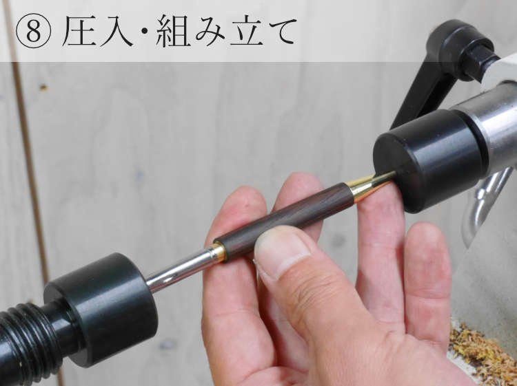 レースペンプレスアダプター ペンづくり最後の工程組み立ての際、ペンのボディに金具を圧入する、ペンづくりに必須の専用プレスです。 |