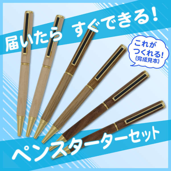 届いたらすぐペン生地削りを楽しるペンキットが付属。 予算も抑えめに、ウッドターニングをはじめる第一歩としてもオススメ。