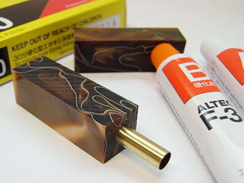 30分で硬化するエポキシ系接着剤です。 ペンメイキングでの真ちゅうパイプの接着にも便利です。 可使用時間は20分(25℃)です。 あせらずに作業できます。