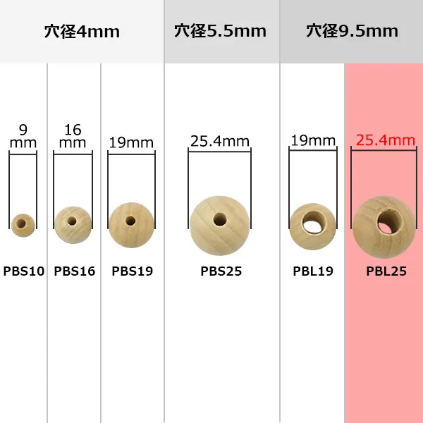 適合丸棒:9.5mmのもの(隙間なし→ ビーズと軸が一体化する)