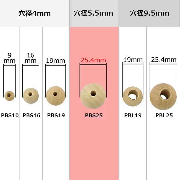 適合丸棒:4.8mmのもの(隙間あり→ 軸に対してビーズがスムーズに動く)