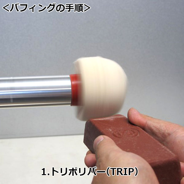 この磨きにくいところを気持ち良くバフがけできるのが、球状のボウルバフです。