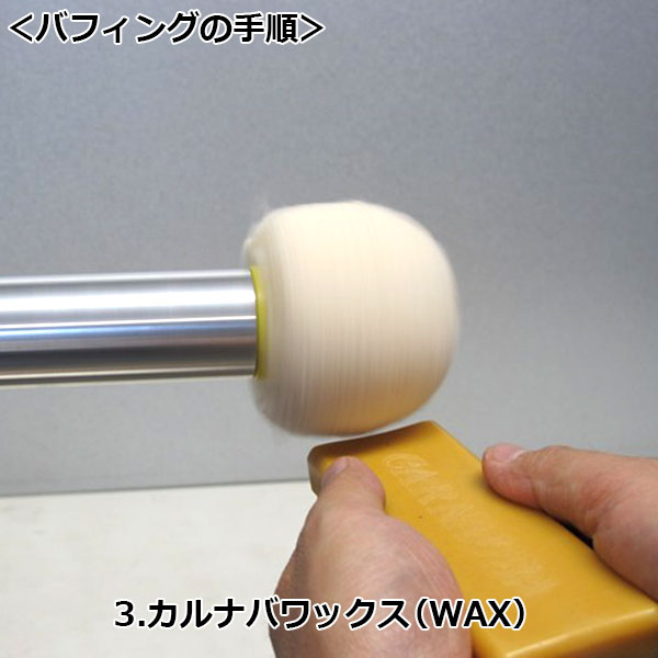黄色いリングのバフには光沢出し用のカルナバワックス。
