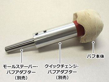 旋盤作品の仕上げに適した丸い形状のバフィングキット