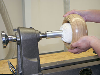 作品の仕上げ研磨として効果の大きいバフ作業(バフィング)、木工旋盤でこの作業をできるのが、このBEALL ボウルバフキットです。
